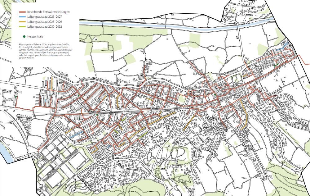 Besteht Interesse an einer Versorgung mit erdwärmeriehen, kann die Verfügbarkeit über info@erdwaermeriehen.ch oder unter der Telefonnummer 061 275 5300 angefragt werden. Auf dem Netzplan sind das aktuelle Versorgungsnetz wie auch die zukünftig vorgesehenen Netzerweiterungen ersichtlich (hier kann dieser heruntergeladen werden).